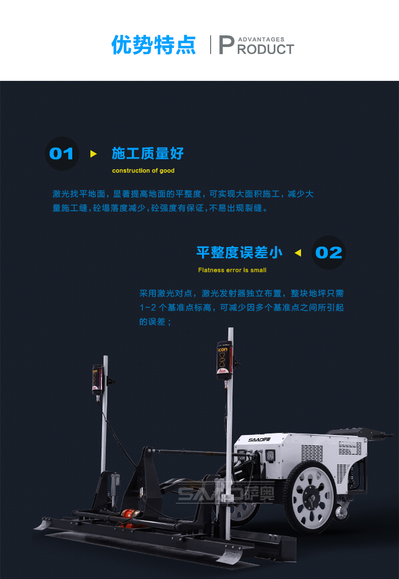 3.用來控制地面標(biāo)高的激光發(fā)射器是獨(dú)立布置的,地坪標(biāo)高不受模板控制,且不會(huì)產(chǎn)生累積誤差。