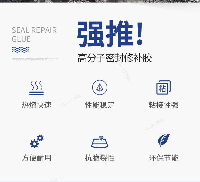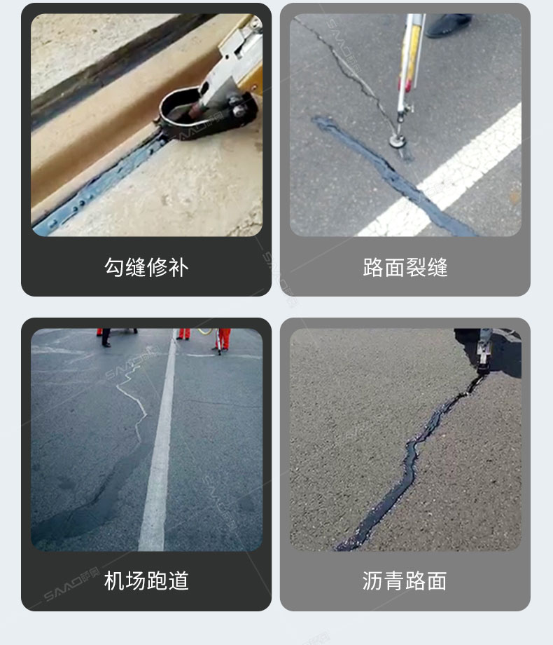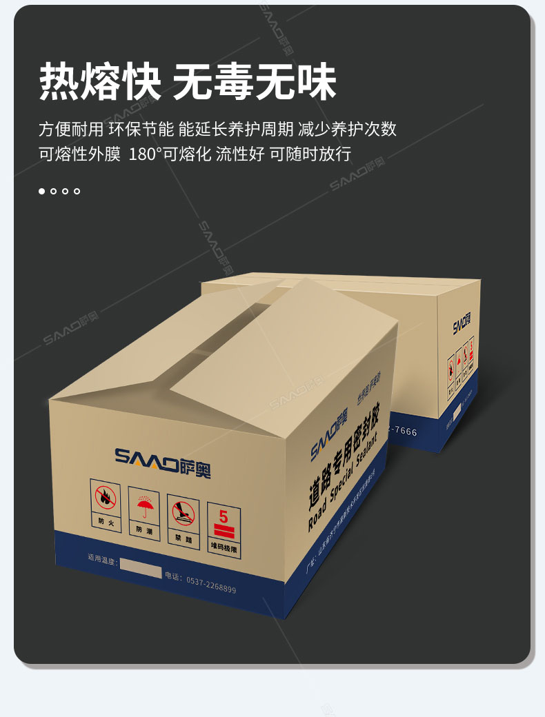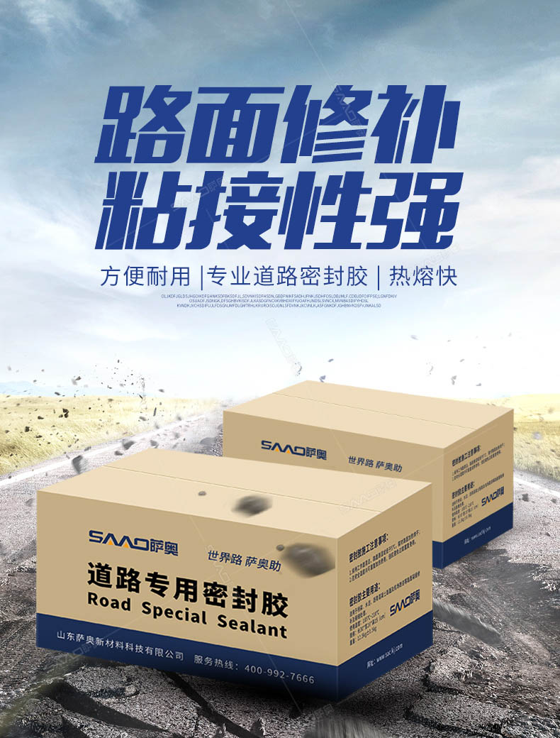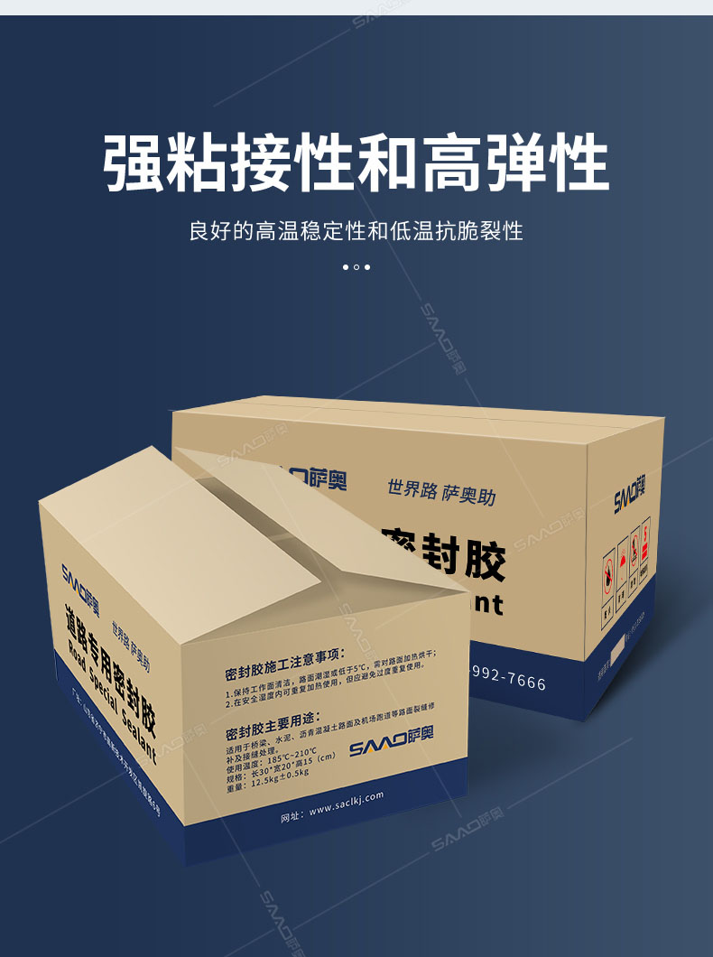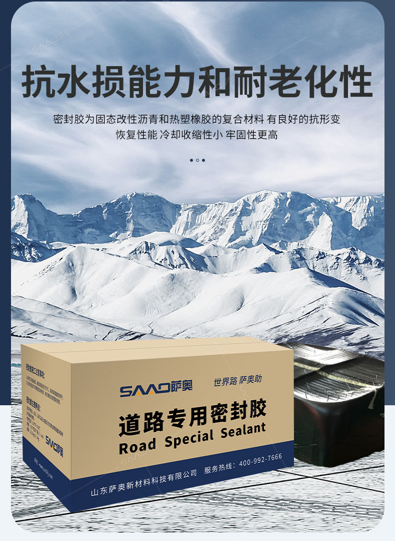 薩奧系列密封膠為固態(tài)改性瀝青和熱塑橡膠的復(fù)合材料,熱熔快,粘接性強(qiáng),具有良好的抗形變恢復(fù)性能。與其它類(lèi)型密封膠相比,該類(lèi)型具有低稠度,易于滲入各種裂縫等特點(diǎn)。在夏季,其高溫軟化點(diǎn)可達(dá)96℃;在冬季,其耐低溫可達(dá)近似-23℃,因此更適合在溫差跨度大的溫帶環(huán)境。