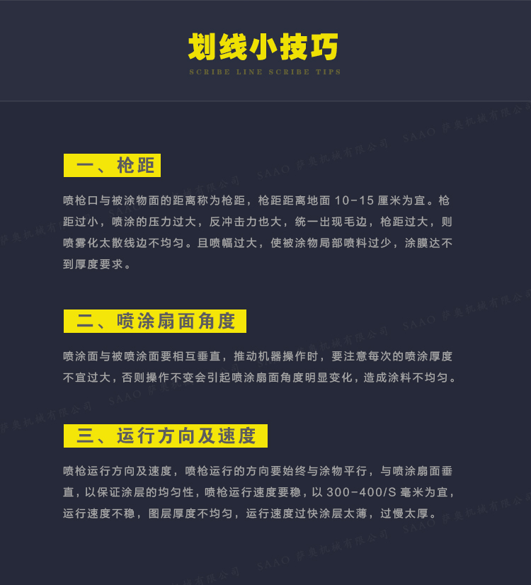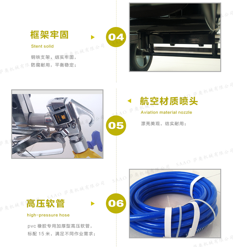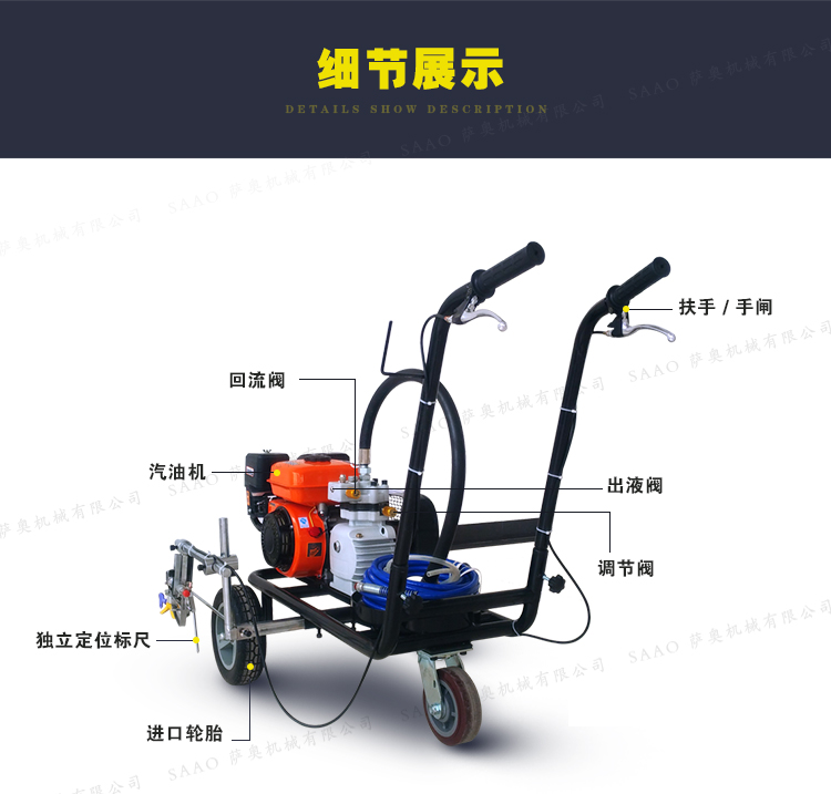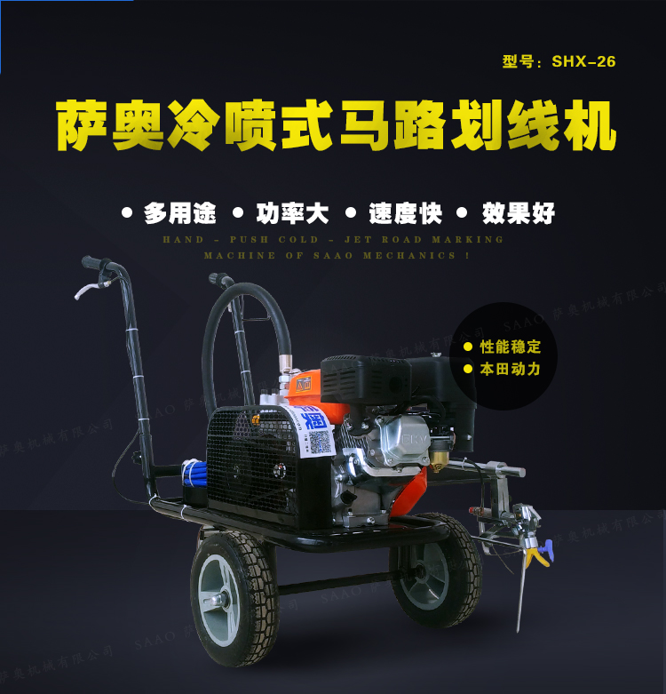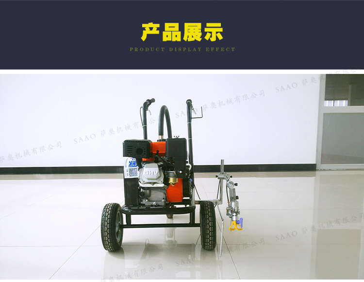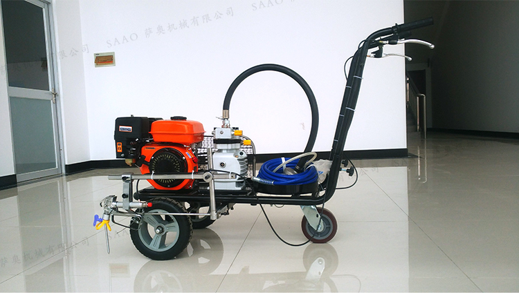 冷噴劃線機(jī)用汽油機(jī)帶動(dòng)高壓泵的無(wú)氣噴涂技術(shù)運(yùn)用于運(yùn)動(dòng)場(chǎng)地劃線車(chē),噴出的線型清晰、流暢、飽滿(mǎn)、均勻、工作效率高。