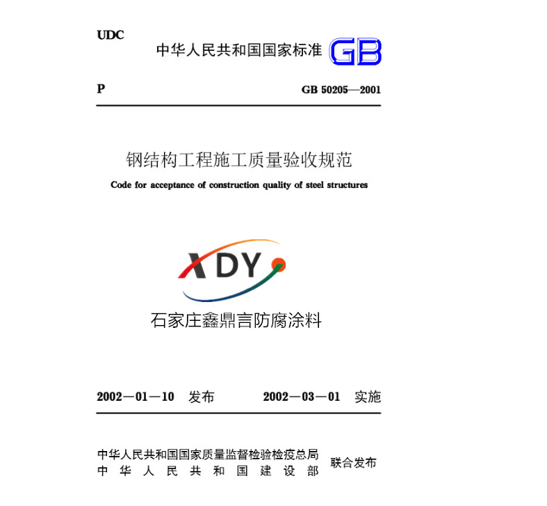 本文介紹了GB50205-2001鋼結構工程施工質量驗收規范對于鋼結構防腐涂料涂裝的表面處理要求,各類防銹漆、底漆對應的最低除銹等級及防腐涂料的涂層厚度、驗收標準。專業的XDY鋼結構防腐漆生產廠家石家莊鑫鼎言防腐涂料廠為您提供質量優異,價格合理的XDY鋼結構防腐涂料全系列產品。