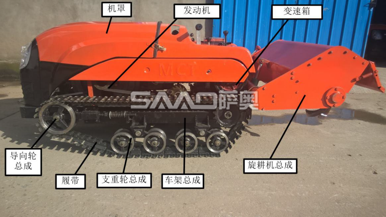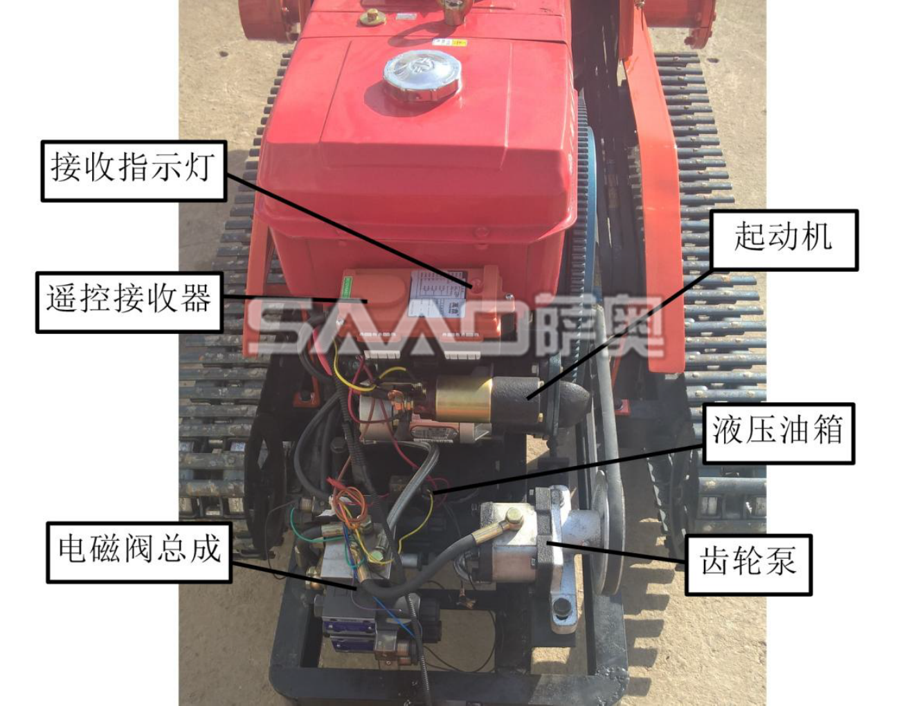 遙控履帶自走式旋耕機是在機械操縱的基礎上,采用先進的電子集成控制系統(tǒng)和液壓系統(tǒng)相結合,改進設計為機械、遙控兩套操縱系統(tǒng)。可以隨機操縱,也可以人機分離、遙控操縱。使履帶自走式旋耕機實現(xiàn)了手、自一體化操作,從而大大降低了操作人員的勞動強度,更大程度上保證了操作人員的人身安全。