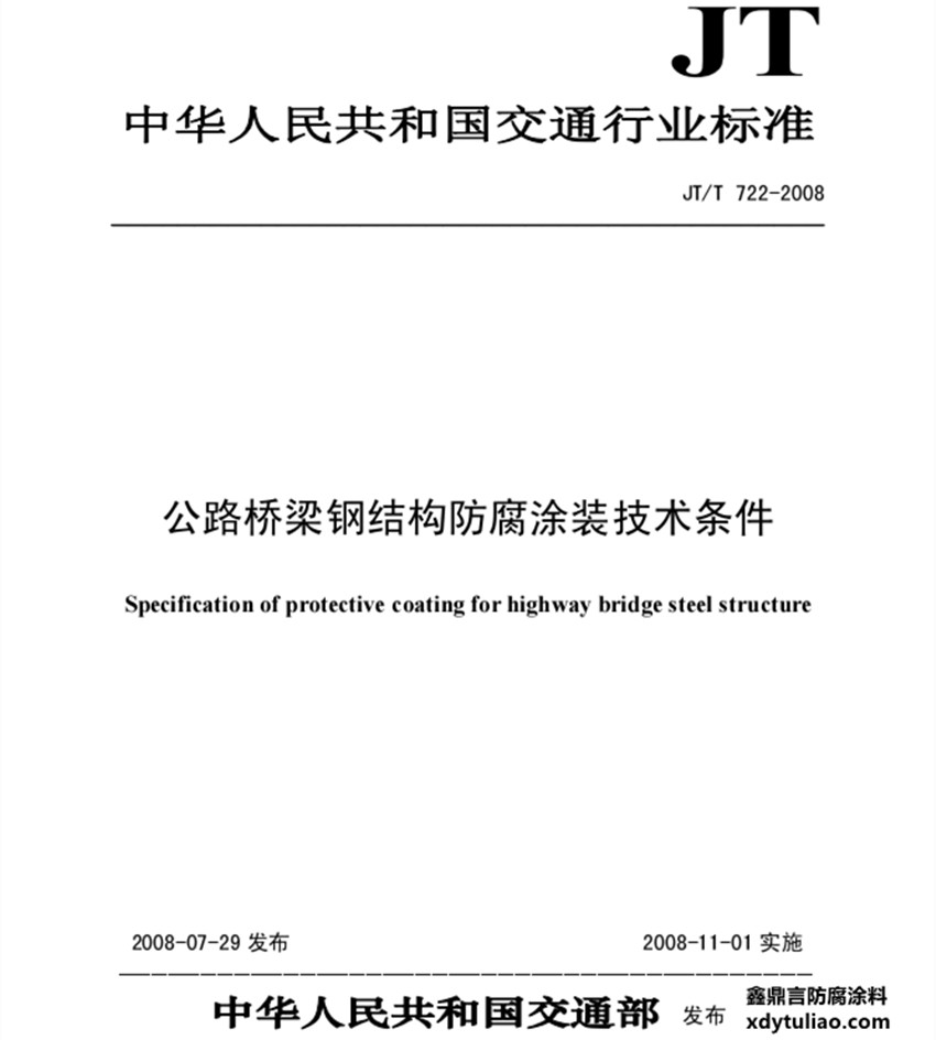 公路橋梁鋼結構JT/T 722-2008防腐涂裝要求