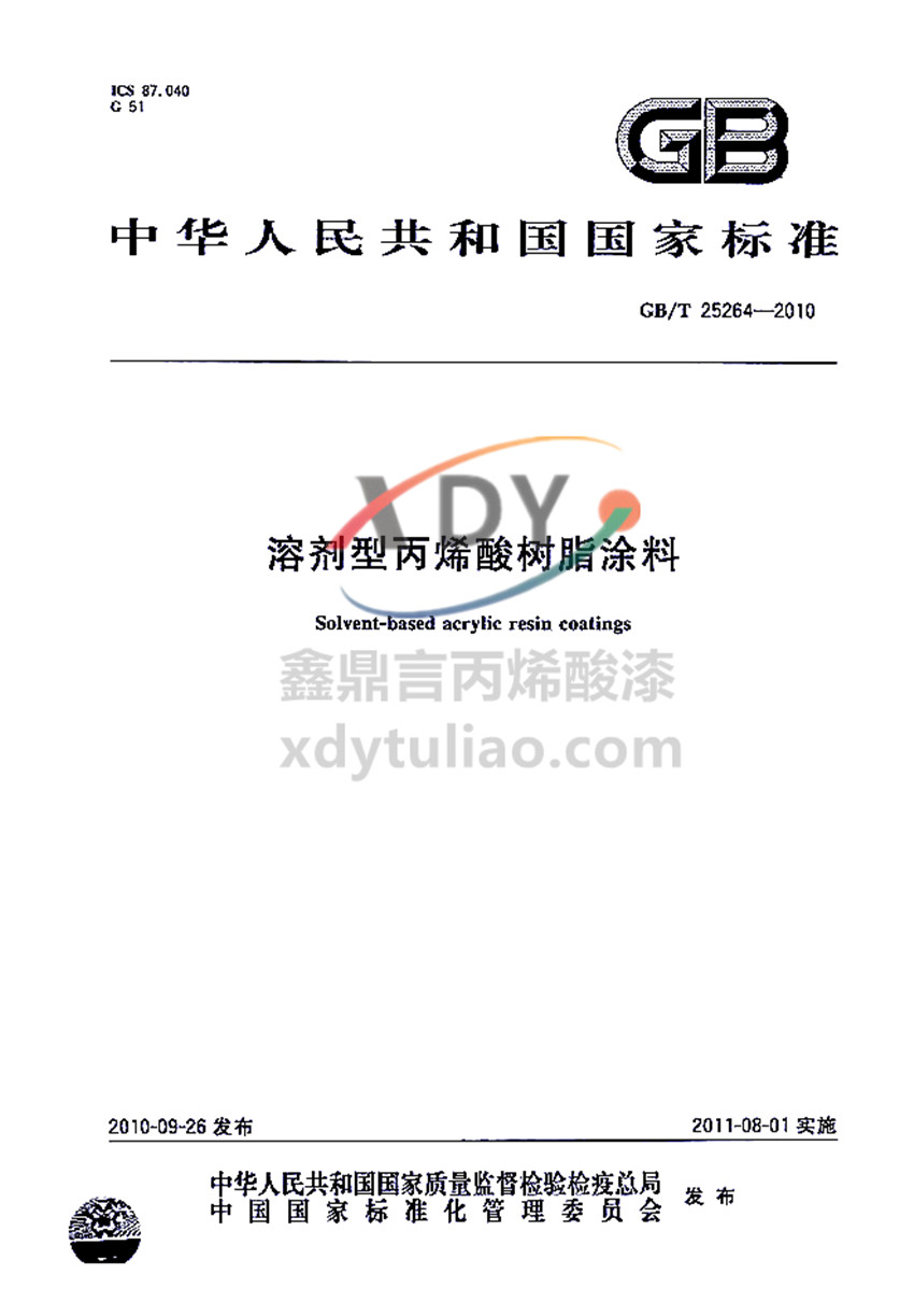 溶劑型丙烯酸樹脂涂料國家標(biāo)準(zhǔn)GB/T 25264-2010