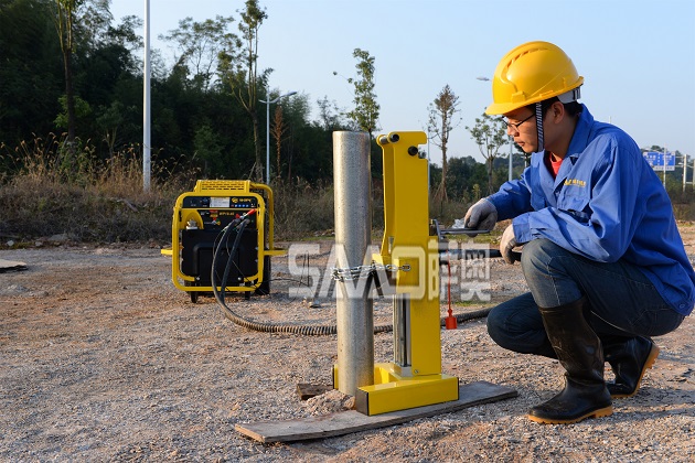 薩奧SAHD-50液壓拔樁機(jī)是一款手動(dòng)操作的輕型拔樁工具。雖然設(shè)備自重有限,但卻有強(qiáng)勁的拔樁力。適用于地面上苛刻的拔樁工作。最大每次拔起行程200毫米,可拔任意形狀的木樁和鐵樁。